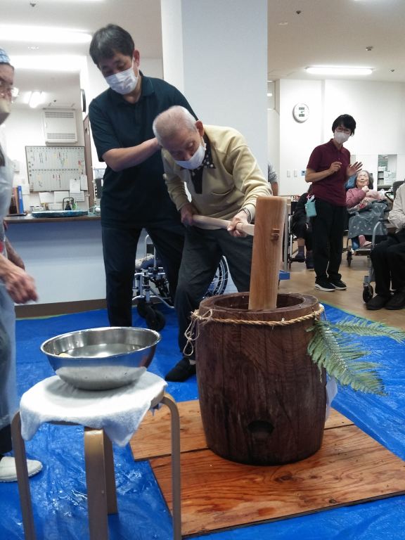 【餅つき】よいしょよいしょの掛け声で美味しいお餅ができました。
