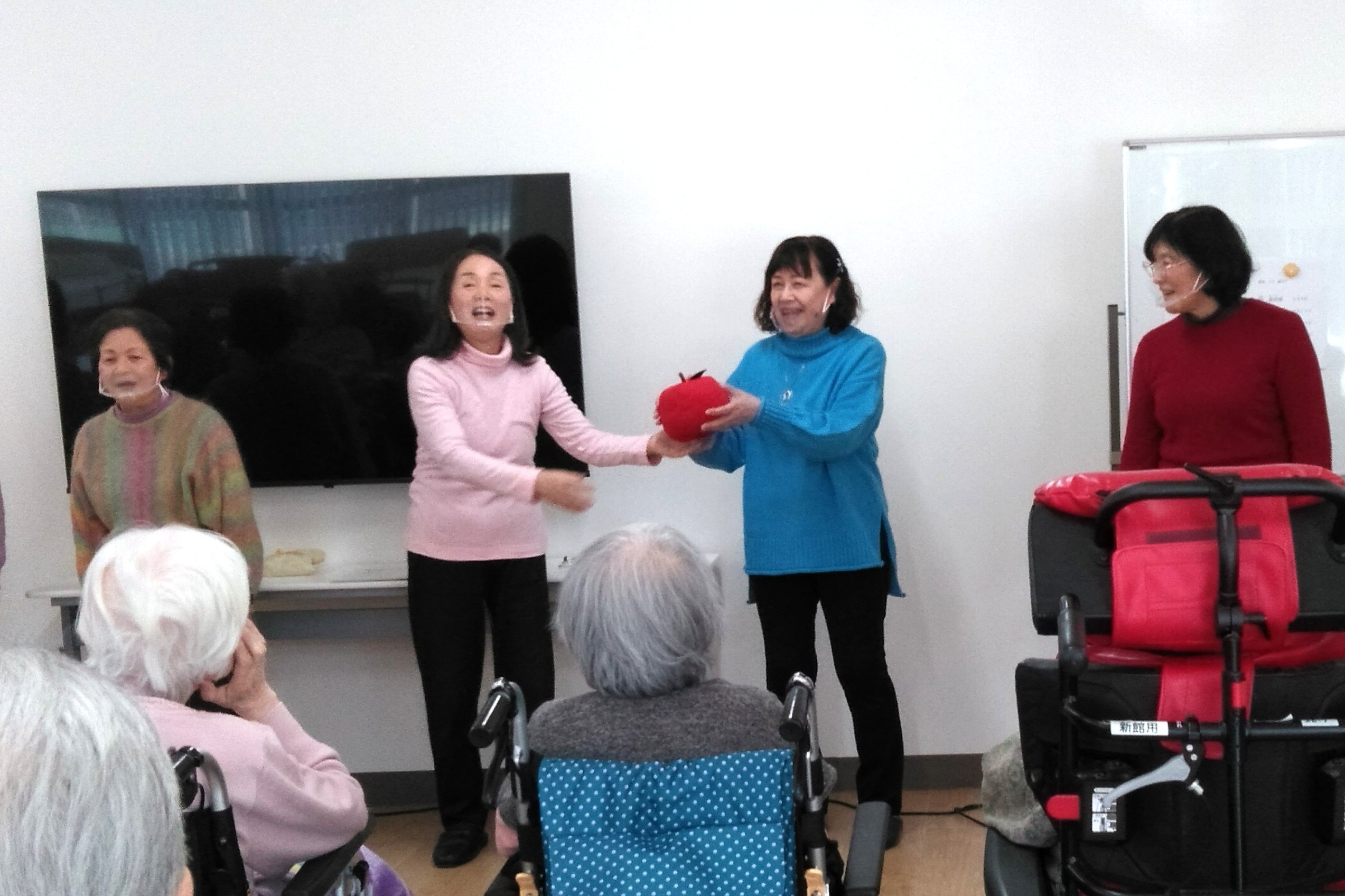 毎月、季節の歌や懐かしい歌謡曲、童謡を披露してくださいます。小物を使ったパフォーマンスも目に楽しく皆様とても喜ばれます。